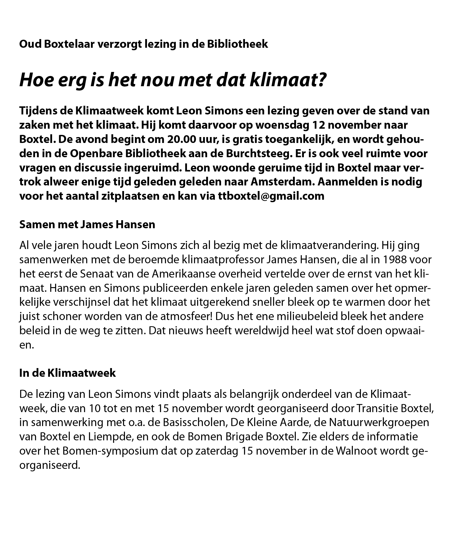 Lezing Leon Simons, wereldwijd bekende klimaatwetenschapper,